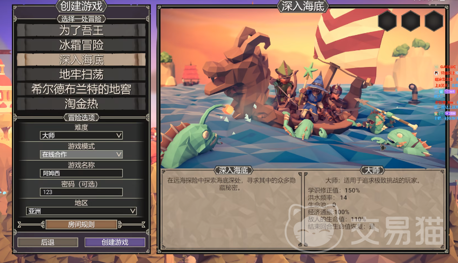 另外还有深入海底地图,在这个地图里玩家可以直接进入到海底世界,在这里会有很多神奇的海洋生物,每个玩家都需要在场所中进行海底生物的探索,在这个过程中,会遇到很多巨型的海洋生物,玩家可以在这里展现自己的勇气,另外还有地牢扫荡地图,这里呈现的是相对比较黑暗的场景,同时在地牢中还会有大量的陷阱和机关,玩家可以在这里不断挑战,对抗强力的boss证明自身的能力,淘金热地图是非常推荐新手玩家去尝试的,主要是因为里面会有大量随机的设定,能感受到新颖的对战,玩家可以选择在游戏里多去采集金矿,这样能获得更多矿石设备。